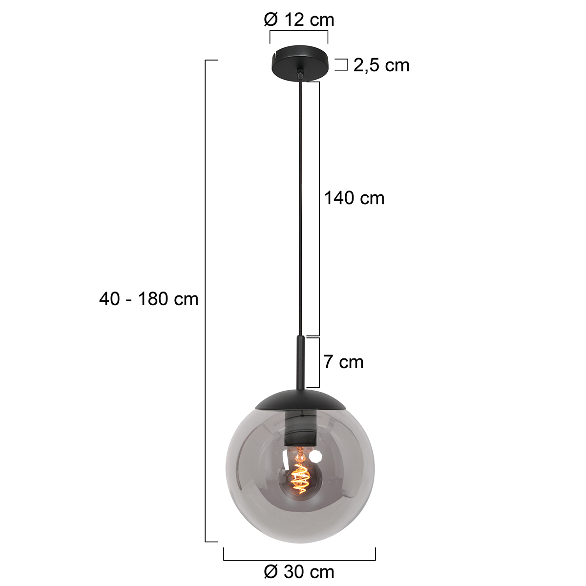 Hanglamp Bollique | 1 lichts | Ø 30 cm | smoke glas & zwart