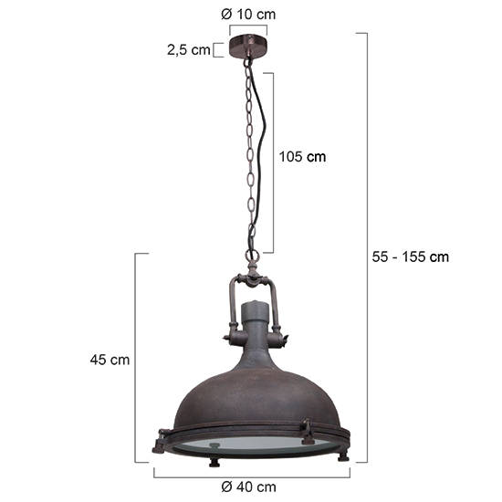 Verrijk je interieur met de hanglamp Eliga, een industrieel vormgegeven verlichtingsstuk dat bruin roest en mat glas elegant combineert voor een verfijnde, stoere look. Ideaal voor boven een eettafel of als middelpunt in een kamer, deze lamp past naadloos in diverse stijlen. De hanglamp heeft genereuze afmetingen met een diameter van 40 cm en hoogte van 45,5 cm, en is uitgerust met een E27 fitting voor diverse lichtbronnen, terwijl het design verstelbaar is tot 155 cm hoog. Bestel de hanglamp Eliga voor een robuuste en toch sfeervolle uitstraling in je ruimte, met een snelle levering van 1-4 werkdagen.