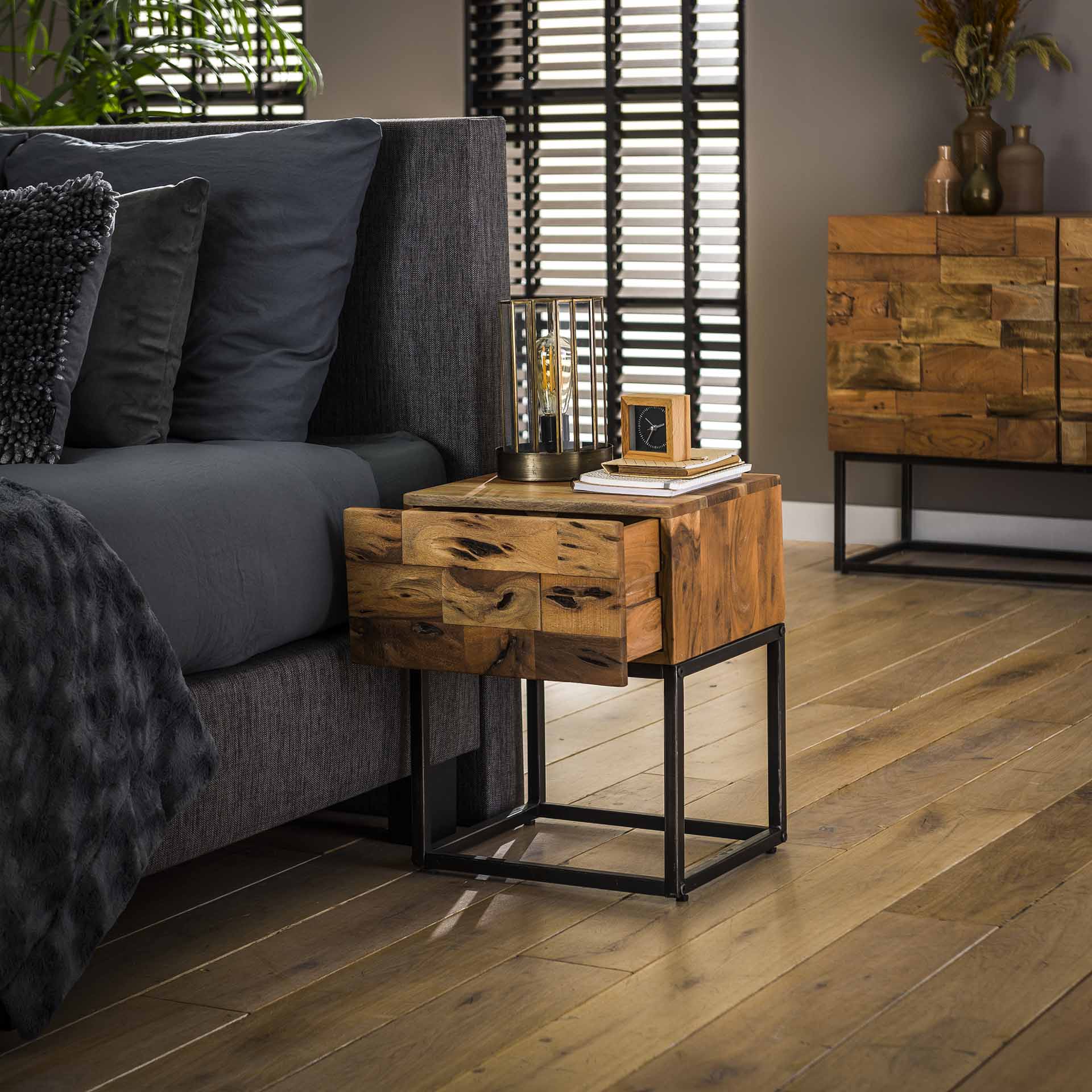Nachtkastje Mill | 1 lade | 40x35x50 cm | acacia gezandstraald