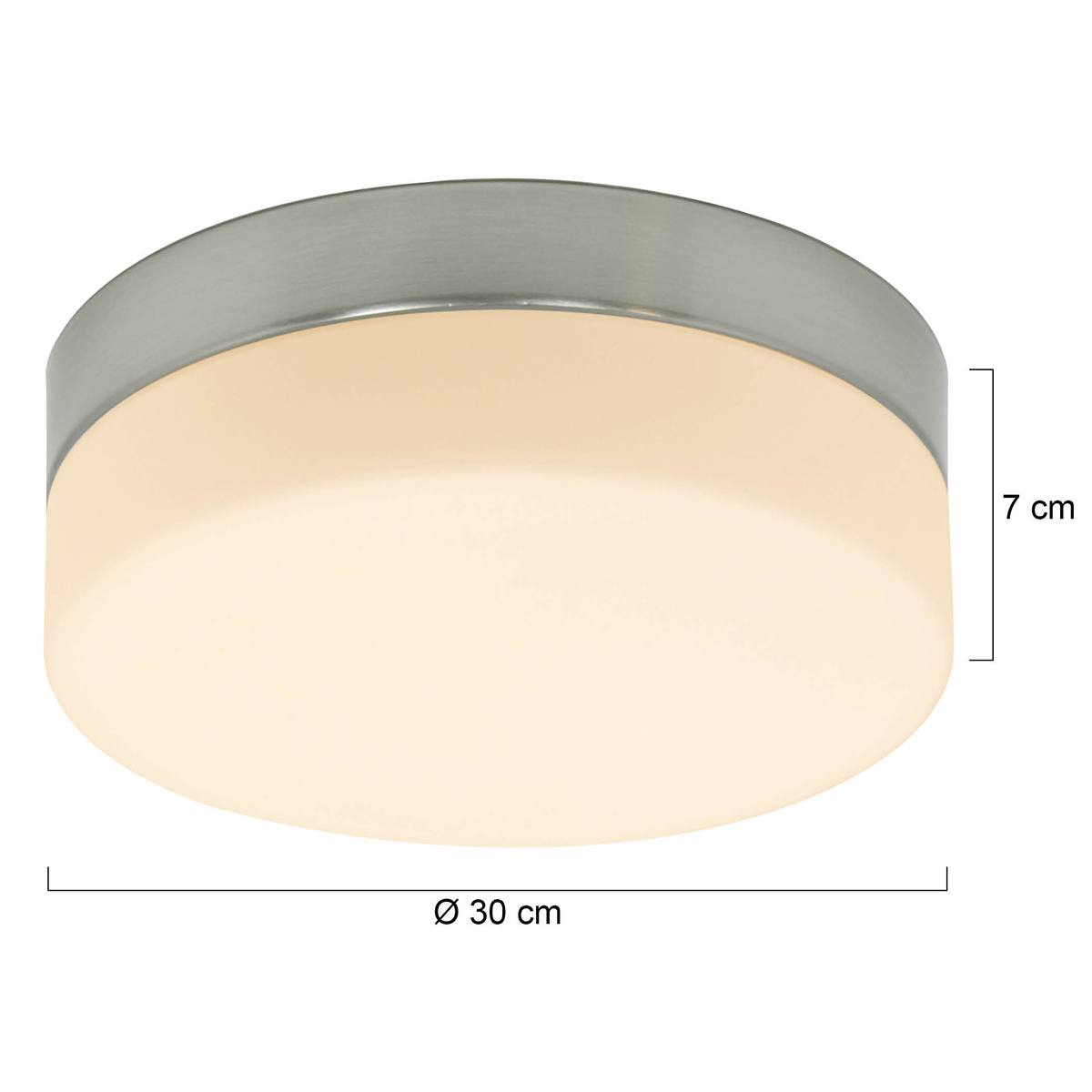 - Compacte dimensionering: Met een lampenkapdiameter van 30 cm en een hoogte van slechts 4 cm neemt deze plafonnière weinig ruimte in en is daarmee ideaal voor kamers met een lager plafond.