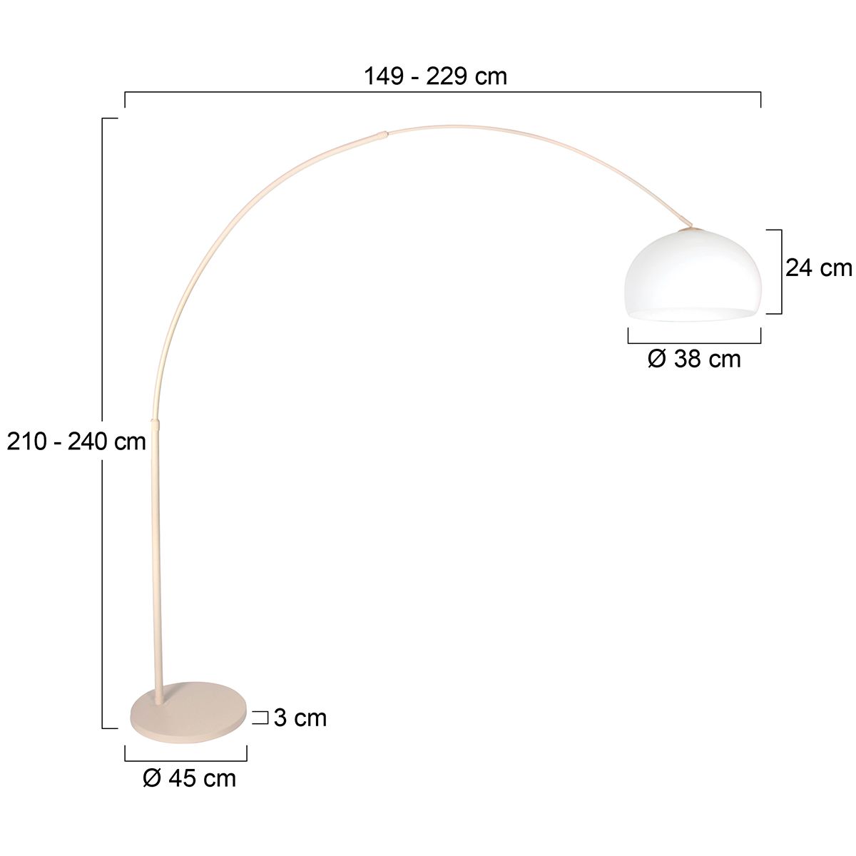 Verstelbare hoogte – De Sparkled Light 4314CR is vervaardigd uit hoogwaardig metaal in een chique creme kleur en heeft een stevige voetplaat van 45 cm. De maximale hoogte bedraagt 240 cm, uitschuifbaar tot 210 cm, waardoor hij perfect boven een bank, eettafel of leeshoek past.