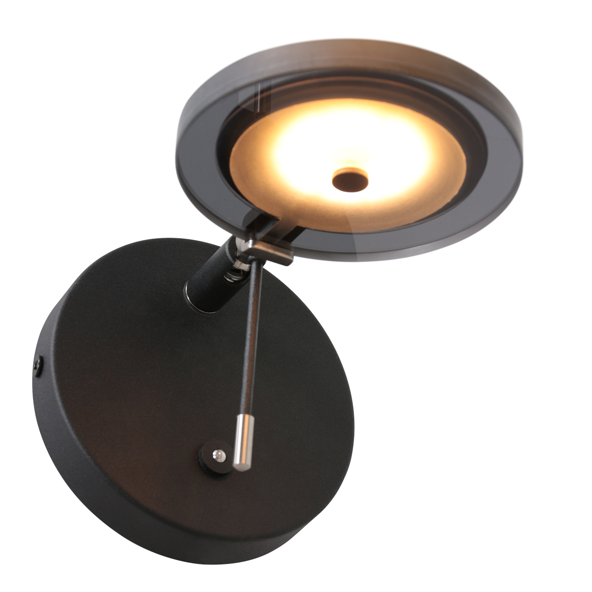 - Sfeerbepalend: De kleur en uitstraling van de rookglazen kap in combinatie met de matzwarte en stalen delen zorgen voor een sfeerbepalende, gedempte gloed in de kamer.