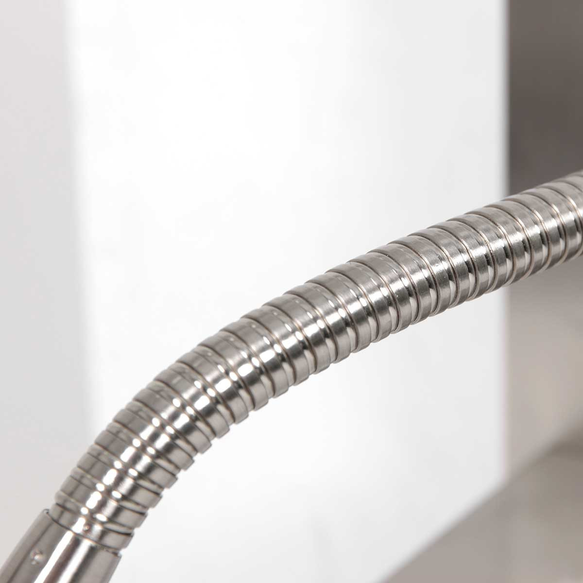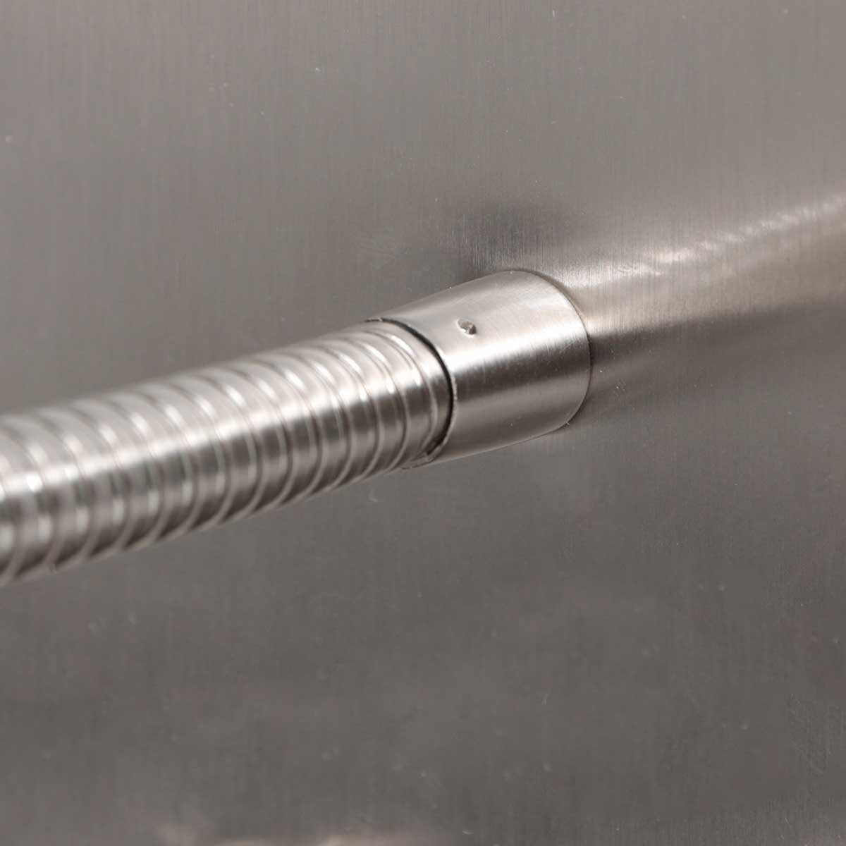 - Harmonieus contrast: De zwarte kleur van de kabel vormt een elegante tegenhanger van de stalen lamp, wat bijdraagt aan het visuele belang van het geheel.