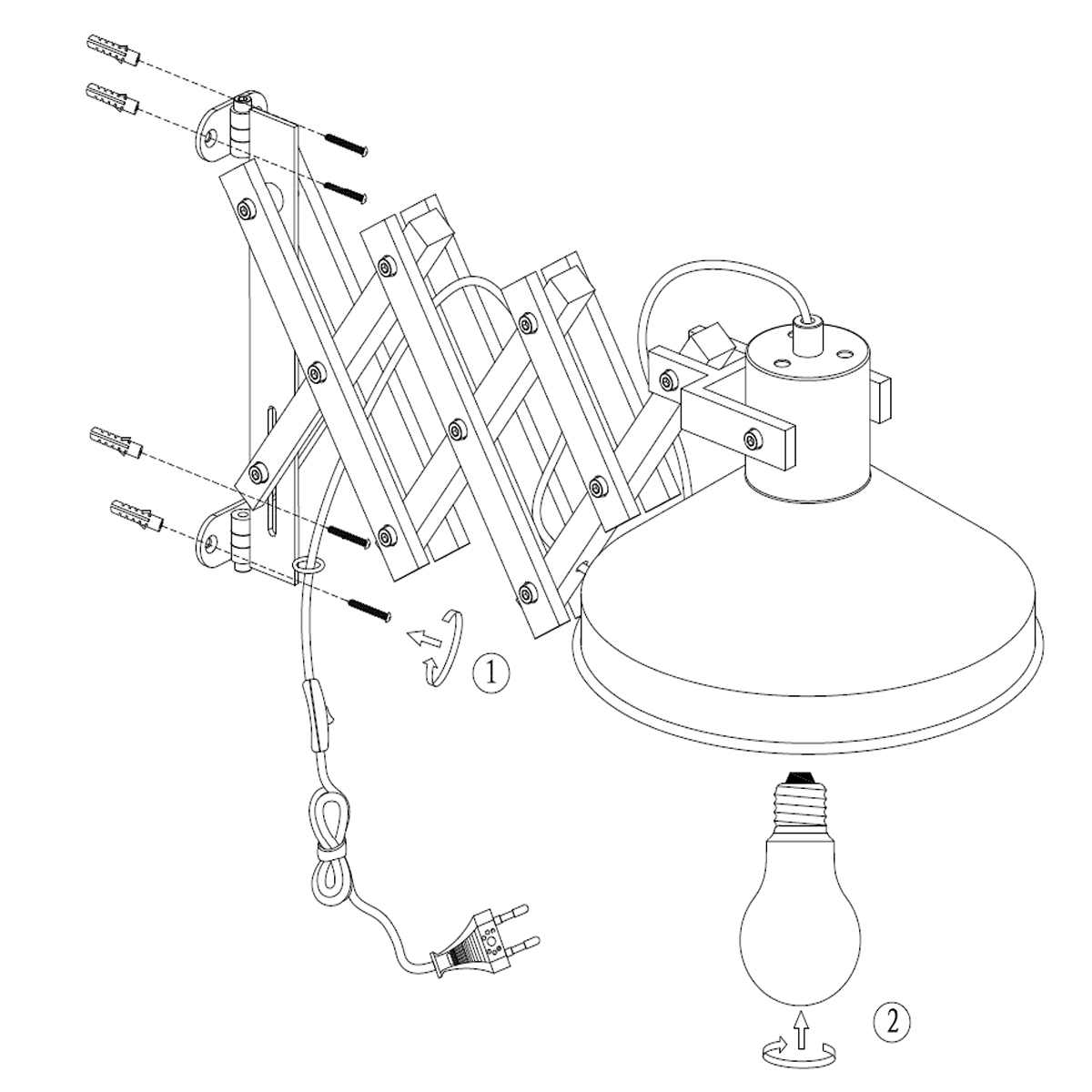 LET OP: Deze wandlamp wordt geleverd zonder lichtbron.